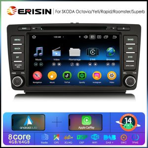 Erisin ES8526S 8″ Skoda Octavia Rapid Roomster Superb Yeti Android 13.0 Car Stereo DSP CarPlay & Auto GPS TPMS DAB+ 4G Multimedia DVD System