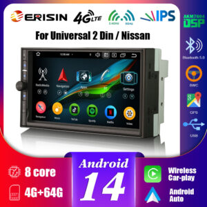 Erisin ES5536U Android 14.0 Universal 2 Din / Nissan Car Multimedia Stereo GPS Navigation CarPlay Auto Radio WiFi OPS DSP 4G LTE BT5.0