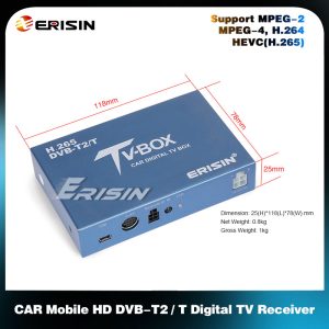Erisin ES336 Car Mobile HD DVB-T2/T Digital TV Receiver Support MPEG-2, MPEG-4, H.264, HEVC(H.265) USB 2.0 Remote Control