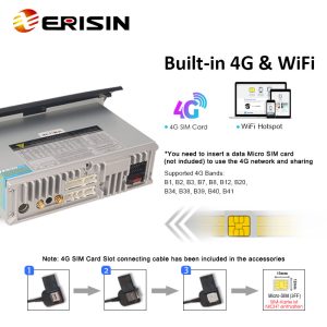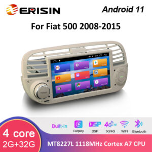 Erisin ES8650FW 7″ Android 12.0 Car Stereo GPS System Built-in 4G SIM Slot WiFi CarPlay & Auto Radio For Fiat 500 2008-2015